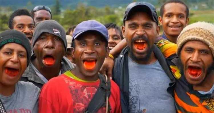 巴布亚新几内亚几乎是一个已经被冰凉摧毁的国家。在这里我们可以发现四五岁的孩子或者是七八十岁的老人。嘴巴里面都会不停的夹着槟榔,在他们的认知当中可以少吃一顿饭,但是不能少嚼一颗槟榔。可能这就是他们的动力来源;其实也是因为新几内亚的气温以及图,然后非常适合种植槟榔,很多人都会把种植槟榔当成是自己的工作。这也导致了很多人都会深陷其中。
