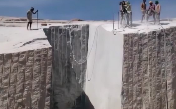 采石场位于地下300米处。矿工没有任何安全设备和交通工具。他们只能通过粗绳或梯子步行爬到矿区,这显然不是一件容易的事情。到达地面后,他们立即开始工作。矿工们需要用凿子在极其坚硬的大理石上凿出裂缝,然后将凿子插入大理石。这个过程经常涉及到很多敲门。久而久之,连锤子都砸成了巨大的凹陷。经过一个小时的高强度敲击,大理石碎成了更小的碎片。