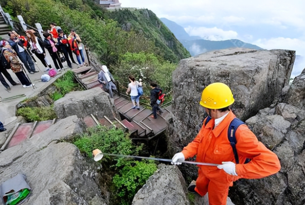 三千米悬崖上抛垃圾 最后怎么处理?(景区垃圾)