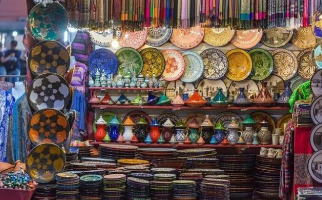 在一点摩洛哥也和很多的旅游景区一样,在这里会摆放卖很多的工艺品,只不过这里的工艺品确实很好看,花花绿绿的,而且还有很多漂亮的花纹,当地的人们可能会用英语来诱导周边的乘客们买这些纪念品说不定在国内的义务小商品市场,五块钱一个的盘子在那里就需要300块钱才买得到,要是一些看不懂的游客说不定就会直接下手。