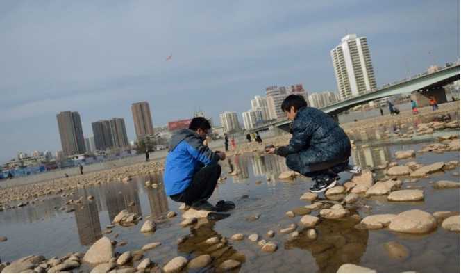 大家都知道,去年降水比较少,长江那一段水位下降了15米左右。正因为如此,干涸的河床和石阵一起暴露出来。说是石头,其实还不如说这些是水泥块,周围挖空,形状规则的立方体,半个人高,都是用水泥倒进同一个模型的模具里。这些水泥速度快,体积大,重量不轻。仅靠人力很难在短时间内把它们放得这么整齐,所以很多人会有各种各样的猜测,甚至怀疑是外星人。