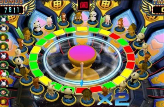森林舞会游戏对局过程中需要玩家准确的判断指针的落点,也就是指针在高速旋转过后会停在哪个动物头像上面,不同的动物头像代表着不同奖励倍数,倍数最高的狮子,之后还有熊猫,猴子和兔子。