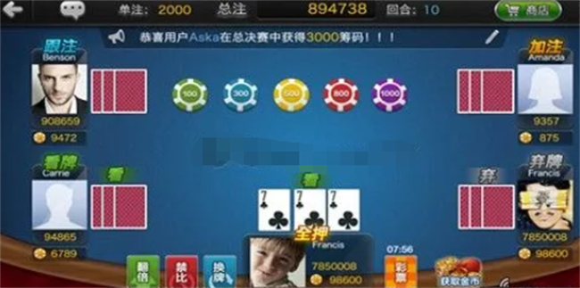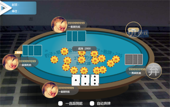 炸金花的奖励也是有一定的倍数关系的,比如说在遇到豹子的时候,炸金花的奖励就会翻倍,所以在游戏结束之后,获得胜利的玩家将会获得双倍的奖励。所以在一局游戏当中,如果判断出哪一个玩家手中有豹子牌的话,那么可以提前结束游戏,减少自己的损失。