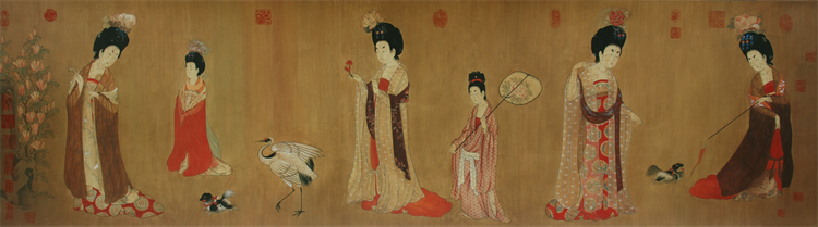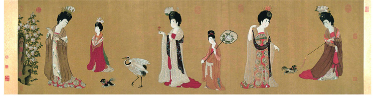 1.画中出现的人物身份、服饰、妆容等各方面,初步判断可以出现在画中的人物是贵族女性,但是是否是宫廷女性,现在还有待证实。