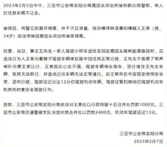 当时的王先生准备带着自己的家人出去吃饭,结果路上遇到一辆敞篷车挡住,他就按了一下喇叭,结果这个敞篷车直接挡在了王先生的车前面,里面坐着的是一个面相凶狠,光着膀子的男人,这个男人在下了车之后又去找了王先生,不过王先生紧闭车窗,这个男人也是一拳砸向了王先生的车窗。甚至于在这之后,王先生向敞篷车主道歉,才让他离开。