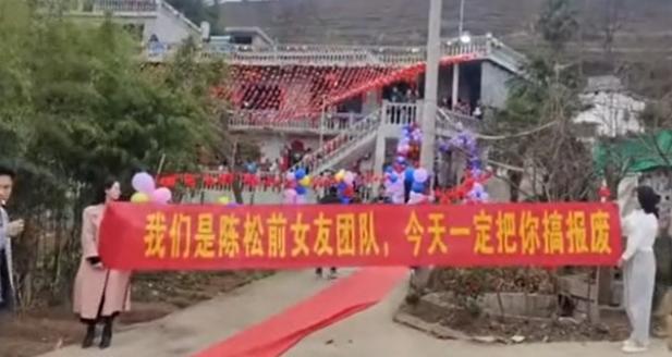 在前段时间云南就有一个男生在结婚的时候,他的前女友组团到来,有两个打扮漂亮的女孩子在接亲的必经之路,也就是红毯上面。挂了一条横幅,我们是某某的前女友,团队一定把你搞废。随后发现这个前女友团队大概有着六七个女孩子。虽然并不知道这些女生和这个男生之间到底发生了什么,不过能够站到这里肯定是之前有过很多的不愉快。