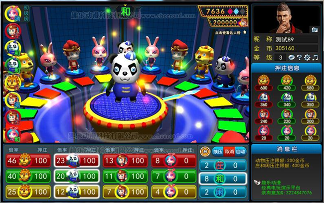 1.经典的森林舞会玩法,就是将各种可爱的动物与颜色组合在一起进行竞猜,动物分别是猫狮,猴子和兔子这4种,颜色是红黄绿这三种。游戏的关键就在于玩家需要快速的抓住狮子。玩家在玩这款游戏的时候一定要看着版打,如果狮子已经出现过了,那么后面的14把之内出现和的结果就很有可能会是熊猫。如果游戏中长时间的不出狮子玩家,也可以打兔子和猴子。