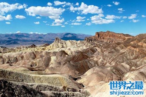 死亡谷由于特殊的地理位置,它是北美最低点的地域,在这里有无数山脉隔断了雨水和湿气,所以十分干燥。这里的气温十分高,在夏季温度通常都在三十八度左右,这可不是常人能接受的高温呢!不过这里的花花草草倒是十分茂盛,每年夏天会有云团形成,也会有降雨,所以这山谷中的花草十分美丽!