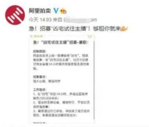这个凶宅试睡员是在网络上面曝光出来的,一般来说都需要在一个房子里面睡一周的时间,然后这一周的工资可以来到15000元,要是在这一周的时间里,根据老板的要求,到房间里的各个位置打卡,只要一周之后这个人没有什么事情,那就可以正常的拍卖这个房子。其实所谓的凶宅试睡员就是驱散一些人心里的阴影。而且要求这些凶宅试睡员一定是要胆子大,身体好,精神素质好的人。要把房间里的各个角落给拍摄下来。