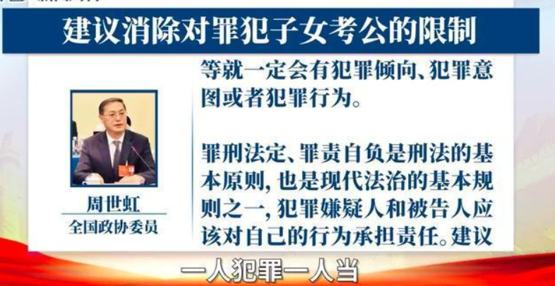 全国政协委员周世虹称 应取消一人犯罪牵连家属的规定,引起热议