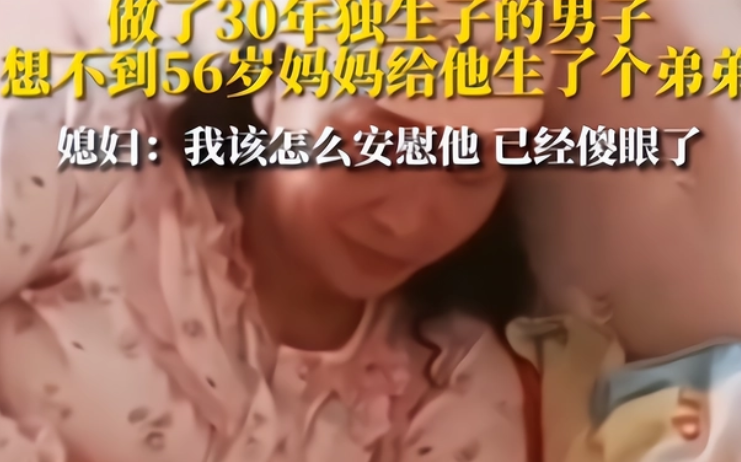 在前段时间网络上有一个妈妈生了二胎,这是一件很让人欢喜的事情,不过作为这个孩子的哥哥却是满面愁容,因为这个哥哥都已经30岁了。而生下孩子的这个孕妇都已经56岁。从视频当中可以看到这个小孩子非常的可爱,妈妈也是一脸幸福的模样。可是那个哥哥抱着孩子的时候看起来10分焦虑。