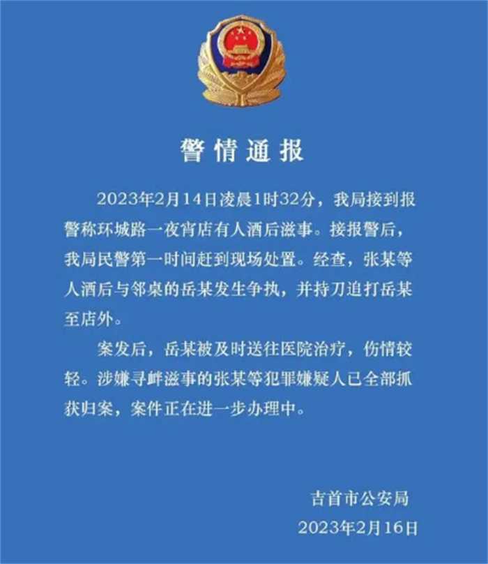 在视频里面我们可以看到有一名穿着白色上衣,蓝色打底的男子被三个人用酒瓶子轮翻的击打头部,还有人上脚踹,从声音的视频可以听到有着很多酒瓶破碎的声音,也有人满头都是血。在2月28日烧烤店表示有警察曾经来过,而且有派出所说他们已经正在调查的过程中。在这之后放出的视频有更加暴力的行为。