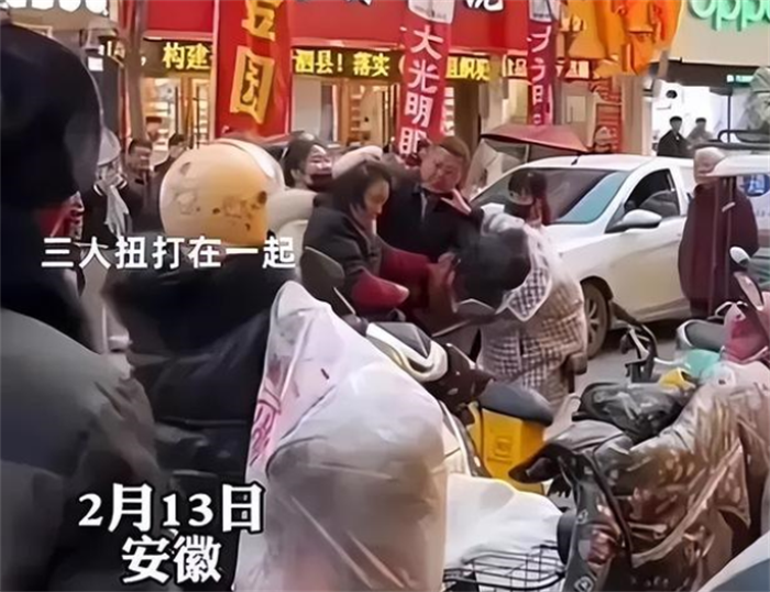 不知道在什么情况之下,这个女人发现自己的老公有小三,并且还和小三在情人节这一天当街出现。然后就叫来了女儿和这个牛打在了一儿,女人的老公则是有意无意的在维护自己的小三。后来大家也看到了这个打人的女子身上的装扮只是十分朴素简单的黑色运动服和棉衣,甚至是在袖子上面还带了一个红色的袖套,很显然是十分的节俭的人在家里甚至还正在干活,就发现了自己的老公出轨。不少人都觉得这个女人打的对,而且不只是要打小三,还要打她的老公。
