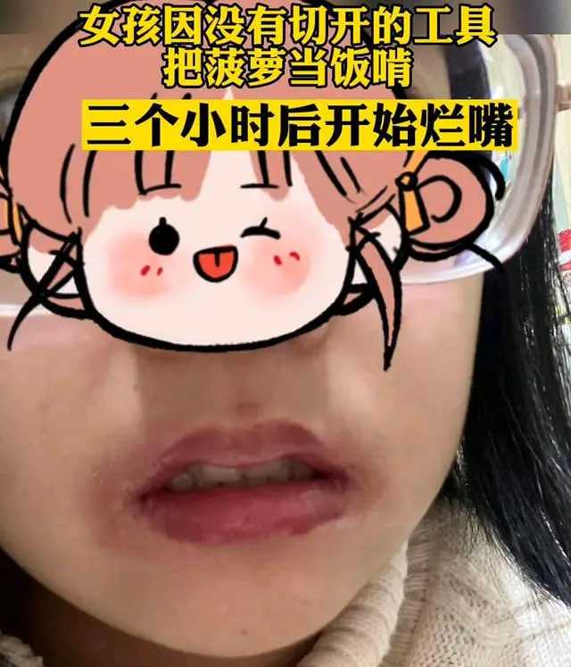 女孩菠萝当午饭 吃完后嘴巴烂掉(菠萝烂嘴)