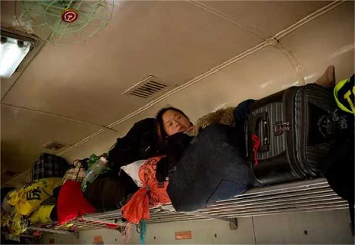 火车上座位被占 女子直接上行李架睡觉(火车占座)