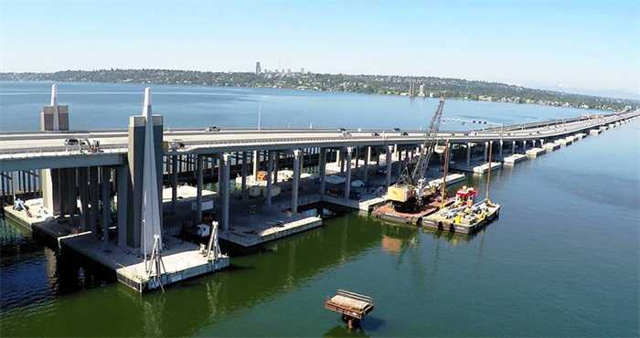 美国建造全球最长浮桥SR-520公路大桥。通过SR-520公路大桥连接西雅图和华盛顿湖东侧工业区。在湖中架起如此深长的浮桥,着实吸引人的目光,倒也成了一道别致的风景。在华盛顿湖底部大多都是松软的淤泥,想要在这里建一座水泥桥的话,需要用桥桩尽量固定住,桥桩的长度至少需要有200米以上,这可是一笔不小的开支。