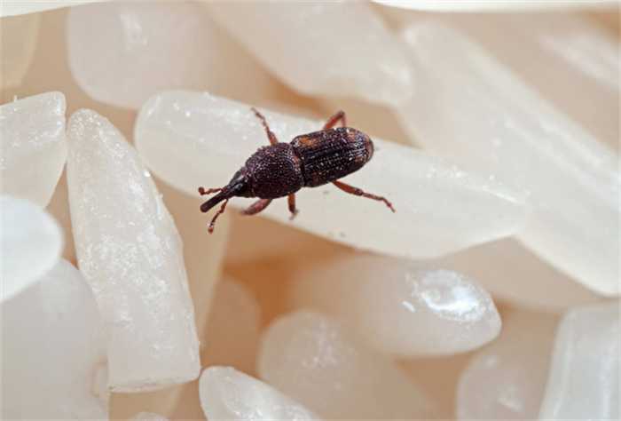 而且它们繁殖能力还特别强,每年大概有八到九个市代,平均一袋20到50天。在我国比较干冷的东北,每年大概能有一到两代,有点潮湿的浙江等地会繁殖三到四代,而像广东这种高温潮湿的地方,正是米虫喜欢的环境,仅每年能繁殖七代。不仅如此,米象成虫还经常会假死伪装,碰到它的时候它就一动不动,没动静后就又开始活动,所以人们也常常会忽视它。