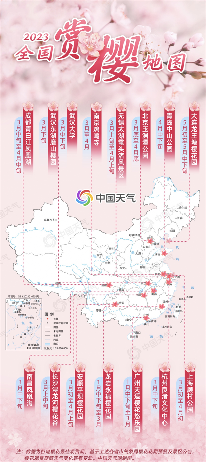 2023全国赏樱地图出炉 樱花贯穿整个春天