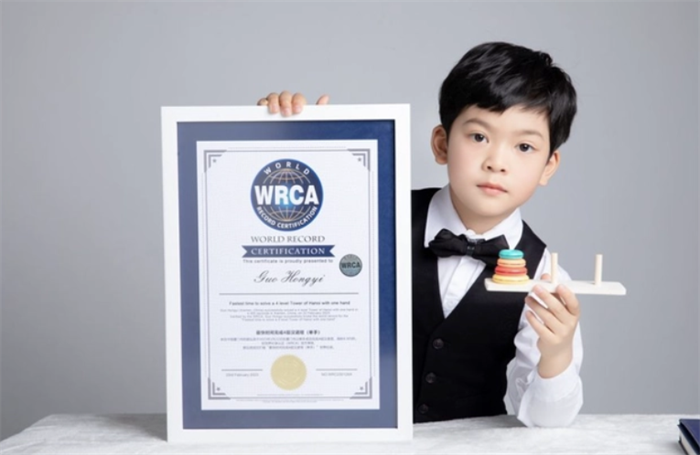 8岁男孩单手打破汉诺塔世界纪录 成功打破一项世界纪录