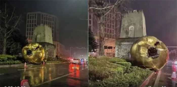 四川邛崃大风 马踏飞燕雕像被吹翻(地标建筑)