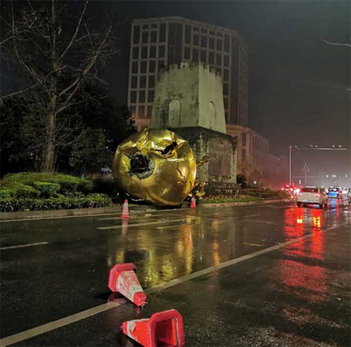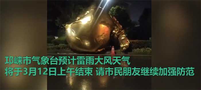 近日由于大风天气影响,四川邛崃地标性建筑马踏飞燕被大风吹翻,3月11日刮了一晚上的大风,马踏飞燕的雕像直接被吹翻在地,这个场景被当时过路的一个司机通过车载监控给拍摄下来,事情发生之后,这里被当地的有关部门使用红线给围住,据相关的知情人透露,这个雕像已经被处理掉了,暂时没有相关信息报道,有人员和财产方面出现损失,根据气象台公布的信息来看,当地的大风应该有六级到七级左右。