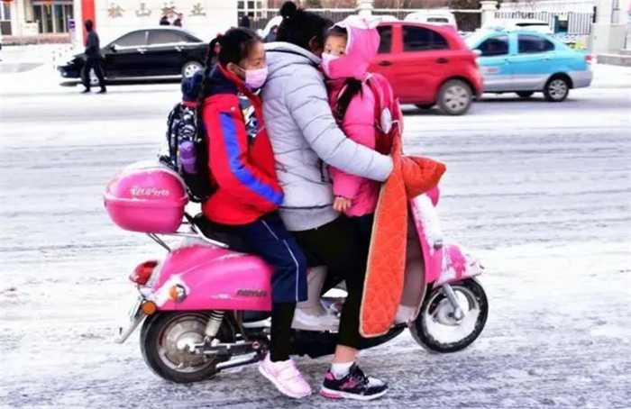 女子骑车带俩孩子上学 交警这样说(交通安全)