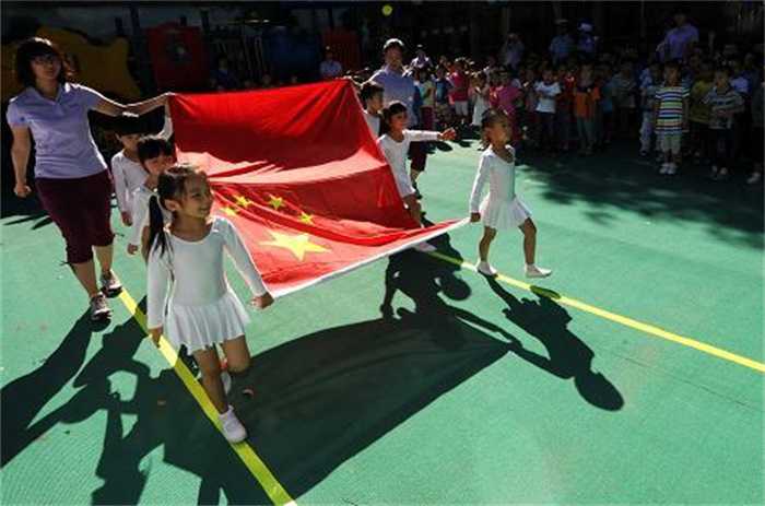 幼儿园升国旗 居然用英语喊口号(文化自信)