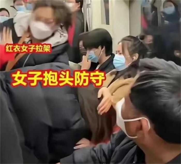 这个大妈在上了地铁之后就往车厢里面走,结果就找到了一个黑衣服的女子,可能觉得这个女孩子比较好欺负就站在了这个女子旁边,骂骂咧咧地说现在年轻人没有素质,黑衣女子自然也是回了几句嘴,两个人就开始争吵了起来,突然大妈就把这个黑衣女子头发抓起来开始殴打这个女子也是本能的去保护住了自己的头部。