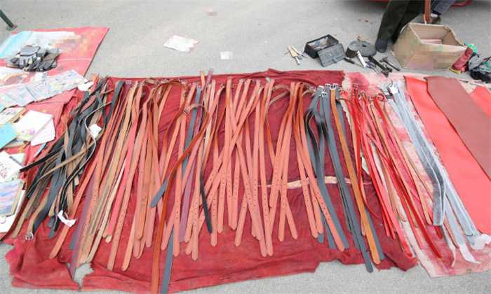 制作出来的皮带光泽度高,也没有异味,而水牛皮带用的通常都是成本很低的硫酸化油。这种油的味道很大,所以大家靠近现割牛皮带的现场可以闻到较浓的味道。此外,水牛皮虽然便宜,但好的部位都用来制作其他皮制品了,剩下的边角料才是现割牛皮带的原料,再混合其他皮革熬煮成胶状物,最后经过其他工艺处理成皮革。然后小商贩进货这些皮革到街头用工具切割,这就是我们所看到的现割牛皮带了。