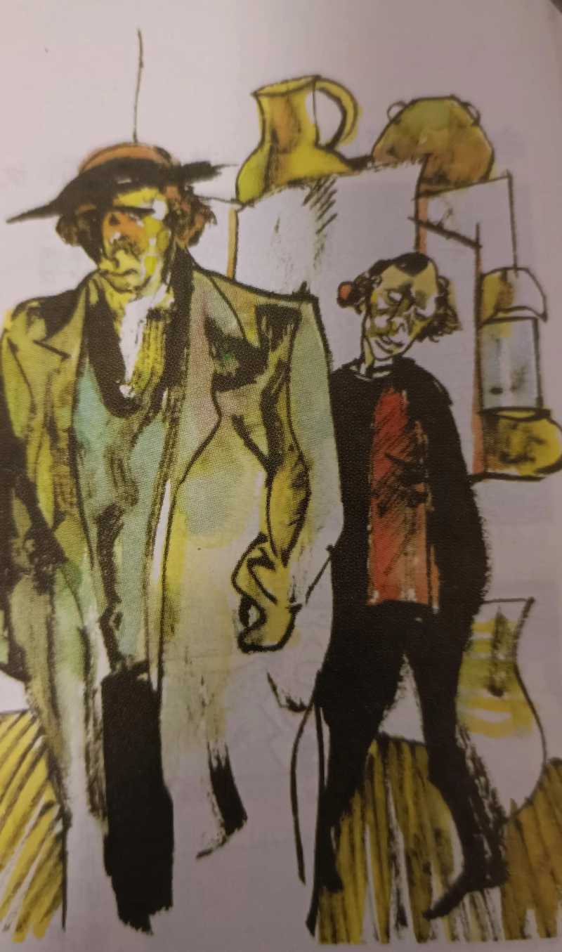 为防万一,卡尔特意到地下室取来一杆老枪。这杆老枪,是他曾祖父留下来的。他想把枪藏在大衣下面,可这枪实在太大了。横放,太宽;竖放,太长;斜放,更加不伦不类。想来想去,他最后抚摸着老枪,自言自语道:“老伙计,委屈你啦。”说着,拿来锯子将枪托锯掉了半截。站到镜子前,在整齐的外表的掩盖下,简直看不出任何破绽。这真是个绝妙之举!想到这里,卡尔得意极了。
