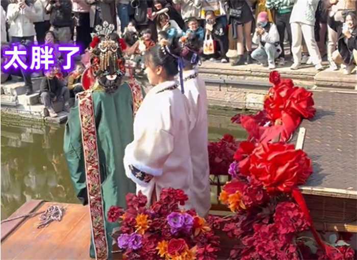 其中一个环节就是新娘乘坐着木船驶向新郎,这是一个非常唯美的环节这里,不少的游客都拿起手机记录下了这一幕,可是在这的时候就有一个声音破坏了大家的心情,有一个大爷突然说新娘太胖了,声音有着非常多的鄙夷,随后就在岸上有了一阵哄笑声,后面还有一个男子说确实太胖了。本来十分开心的新娘肉眼变得没有自信了起来。