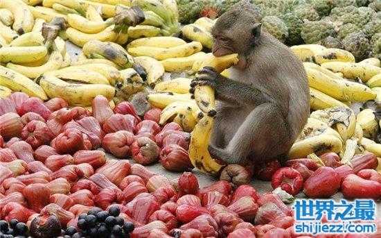 为了纪念当地的一个大英雄,每年到这个时候,人们就会邀请几百只猴子,在这个节日的时候给他们吃丰富的美食,有新鲜的水果,在这一天削好的水果都要达到六千克,之所以给猴子吃好吃的,是因为他们认为猴王是这个英雄的好朋友。