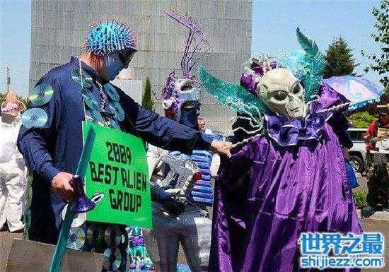 相信人们一直都对外星人有很多的猜测,而这个地方是最相信外星人的一个地方,因为他们认为曾经有飞碟坠入了当地的一个地方,因为这里曾经有外星人到来,所以在节日的这一天,人们都会穿上外星人的衣服,假装外星人游行。