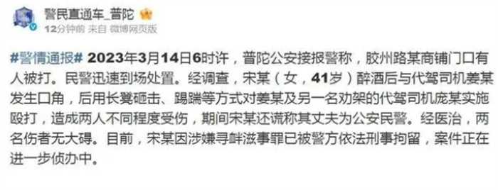 在这件事情发生之后的几个小时上海普陀区的公安局就已经接到了报警,对于这个女人以及她男朋友的身份进行调查,不过经过调查之后发现他的丈夫或者她的男朋友并不是公安局的民警,在经过一直之后,两个被打的人并没有什么大的妨碍,现在这个打人的女子已经因为寻衅滋事的罪名被警方刑事拘留,这件事情也是在进行后续的侦破当中。