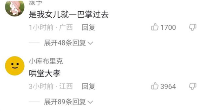 这样的行为很难把这个女孩儿和孝顺两个字给挂上关系,还有网友说自己在家里要是有这样一个女孩儿,那肯定早就一巴掌给扇过去了,甚至还有网友说这个拍视频的人感觉很骄傲,自己的孩子这么聪明,殊不知拍视频的人应该也是女孩儿的父亲或者母亲,等到这个女孩儿长大之后,她的女儿或者孙女有可能也会这么对待她,到时候就能知道老人是多么的孤苦无依。