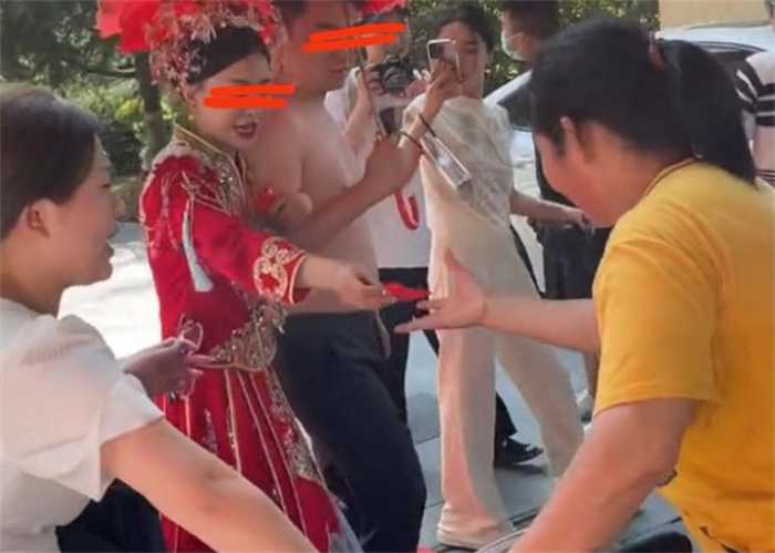 这明明就是一种十分无理的婚闹行为,这根本不是想要讨一个好彩头,简直就是在抢钱,遇到这样的情况,相信很多新人都是非常不愿意的,哪怕是上来说一句吉祥话,那新人肯定也会给他一个红包,这样上去就抢就已经属于抢劫的范畴,等到这个事情上传到网络之后,不少网友也说自己曾经遭遇过这样的事情。
