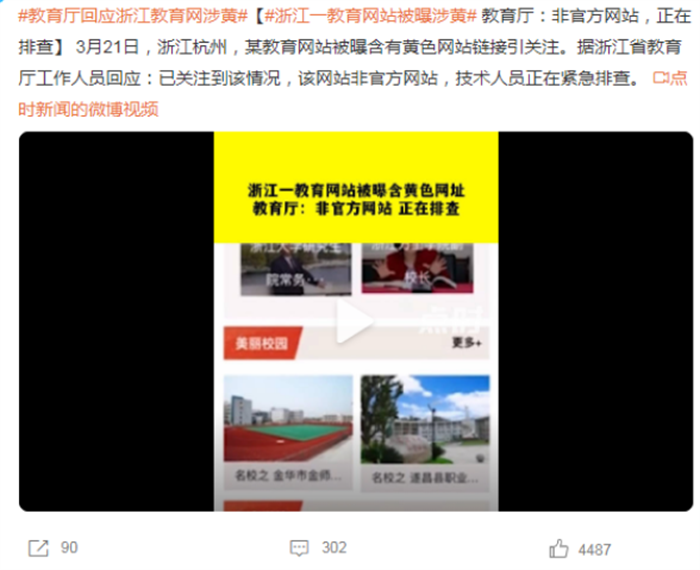浙江一教育网站被曝涉黄 官方做出紧急回应(黄色链接)