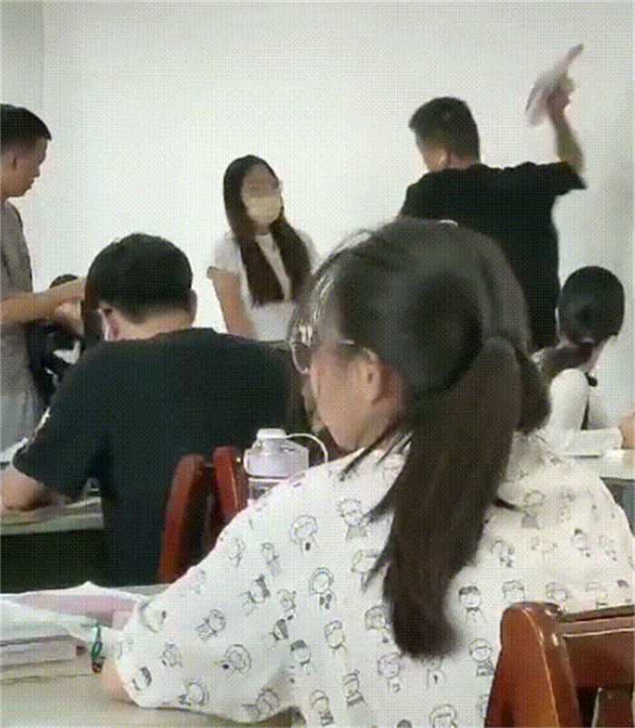 这个视频的起因就是在安徽的一个学校的自习室里面,当时这个女生早早的就来到自习室,因为他要去其他地方,所以就先用一本书把这个位置给占了下来,他本来以为自己这么做就可以把这个位置给霸占出,没有想到等他回来之后发现自己的位置被一个男生给抢了,女生就开始找这个男生理论。男生敷衍了女生几句,让女生情绪非常激动,女生也用书狠狠的砸了一下桌子。