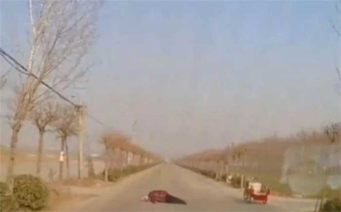 老人躺在马路中间 后面车马上到车(老人讹钱)