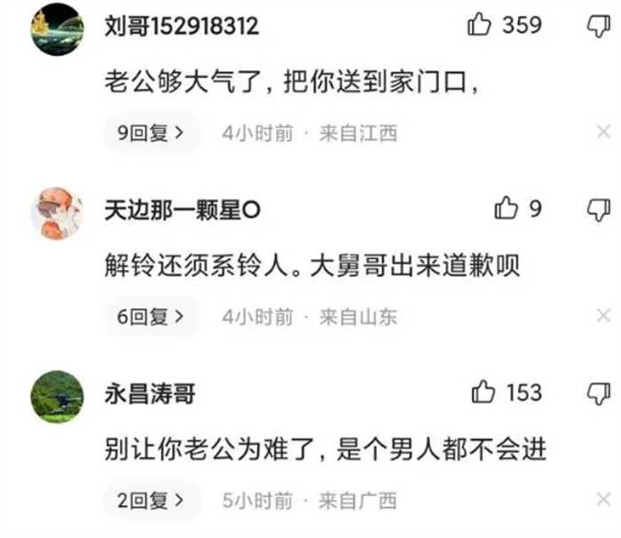 后来人们才终于明白了事情的经过,原来是结婚的时候。妻子的哥哥,也就是男子的大舅哥,直接删了男子一耳光,是为了给下马威。从这之后两家人结下了梁子,男子当时是为了娶自己的女朋友回家,所以忍耐了下来,而现在不见妻子的娘家门则是为了自己的尊严。现在他们回家只是走到村口,男子在村口,从来不会进去。网友在知道了事情的真相之后都表示十分理解,换成是自己自己肯定也咽不下这口气,不会进去家门。