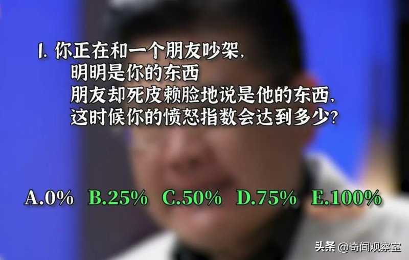 1. 你正在和一个朋友吵架,明明是你的东西朋友却死皮赖脸地说是他的东西,这时候你的愤怒指数会达到多少?