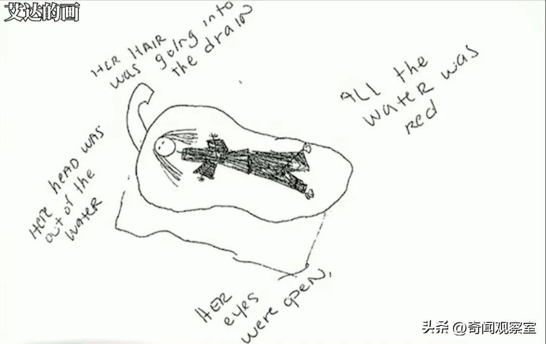 很快,小艾达在浴室发现了母亲,她正半躺在浴缸里,半个头淹没在水里,而水的颜色呈现出诡异的红褐色。