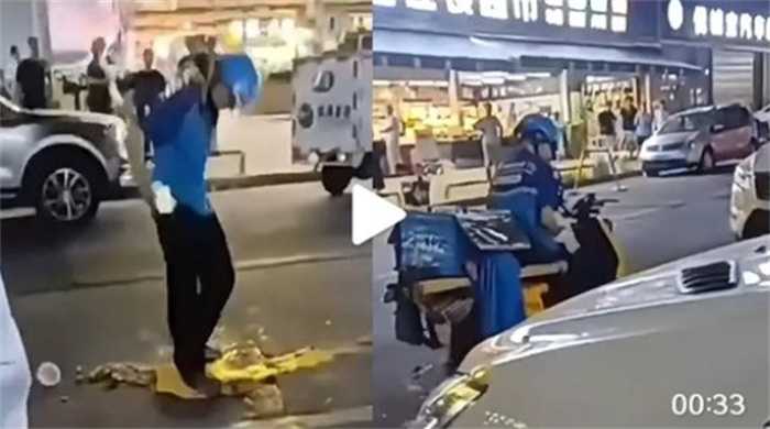 外卖小哥被催单后摔倒 崩溃砸外卖(外卖小哥)