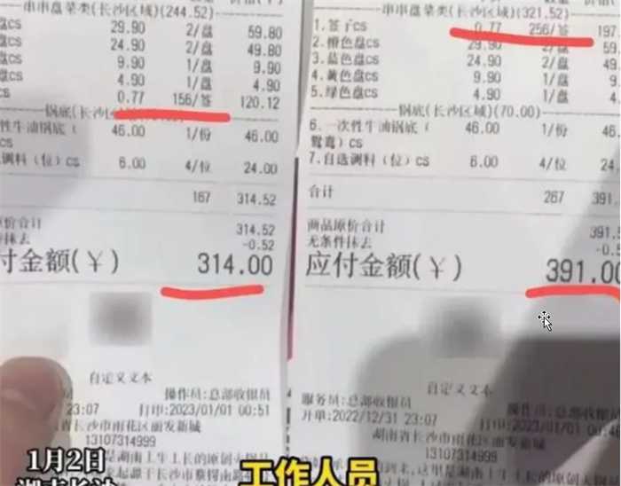 老板过来之后表示可能是服务员数错了,这种情况很少出现,随后重新计算是314块钱,网友把这件事情放到网络上之后,也是引发了很大的争议,觉得这种情况可能是经常出现的,毕竟顾客可能不会去挨个数签字,要是有顾客发现他们可能就是道个歉,然后重新开始算账,对于他们来说根本没有任何亏损,这样做的话可能搞得消费者以后再也不会去了,纯粹是砸自己的招牌。