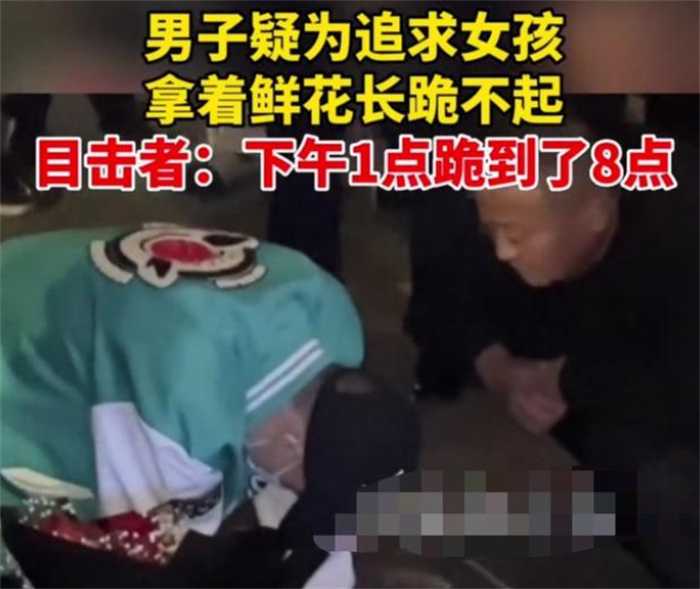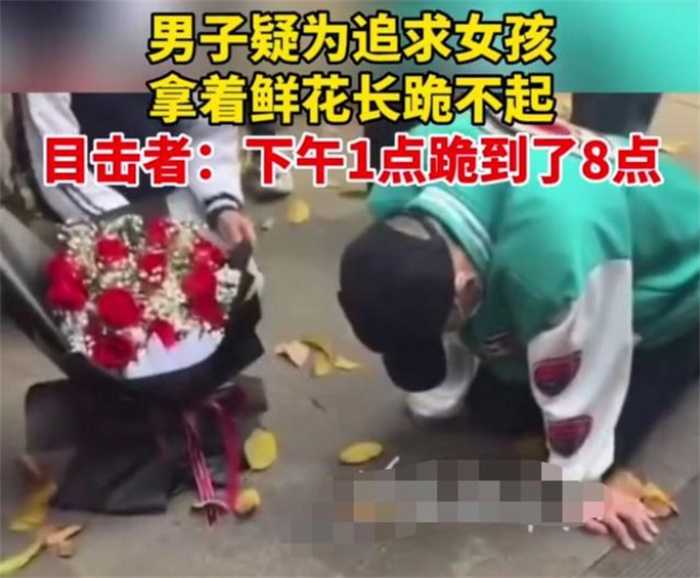 四川男子为追求女友 拿着鲜花跪了几个小时(为爱折磨)