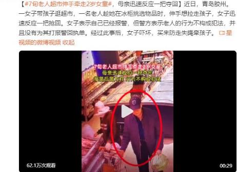警方认为老人的行为没有构成犯罪。在日前青岛一个女子带着自己的孩子逛超市,而这个女子正在冰柜里挑选物品,并没有故障自己的孩子,而旁边的老人则是在趁着女子挑选物品的时候,想要伸手把旁边儿的孩子给拉走,女子反应十分的迅速,一把就把孩子给抢了回来。而后这个女子说自己已经报警。
