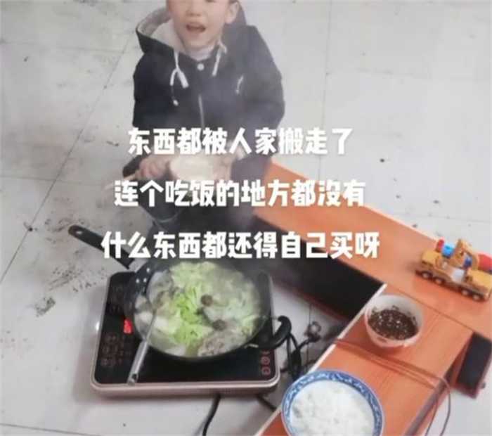 江苏有一个男子发了视频,他们家里几乎没有任何家具和孩子,两个人则是坐在地上吃饭。因为他和妻子离婚之后,妻子把家里的绝大多数家具都给搬空。让男子没想到,居然连厨房里的锅碗瓢盆也带走,不少男子只能去邻居家借了一个电磁炉,并且楼下买了点儿吃的东西回家和孩子两个人坐在地上吃,可能孩子感觉到父亲不太开心,所以对着爸爸说这个菜真香。