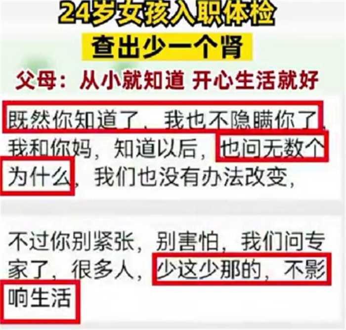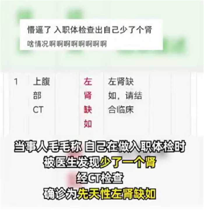 24岁女孩儿入职体检 发现只有一个肾脏(身体缺陷)