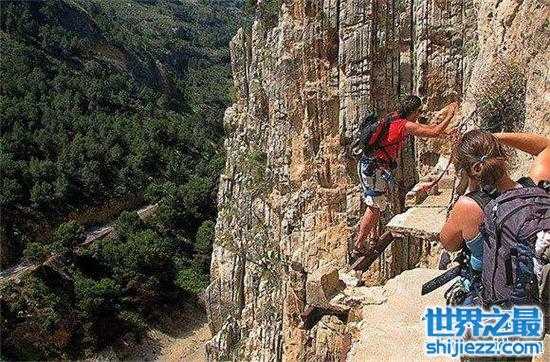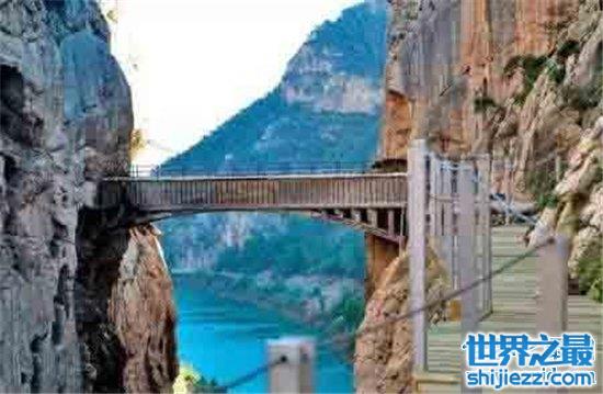 我们最后要说的世界最恐怖的三条栈道就是西班牙的国王栈道了,这条栈道是很长的全长有三公里多,而且这条栈道的宽度不一,最宽的有到一米,也有一些很狭窄的就只有不到五十米,看起来是十分危险和恐怖的。
