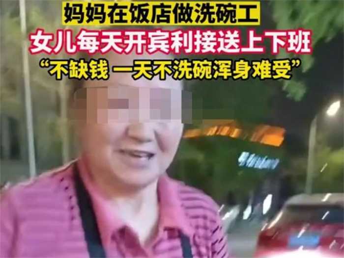 四川的大妈家里很有钱,上班儿只是为了体验生活。要是说哪个大妈在饭店里面洗碗,那可能都会感觉这个大妈的家庭情况不太好,要不然也不会做这样辛苦的工作,可是在前两天有网友曝光四川成都有一个在饭店里面当洗碗工作,大妈每天上下班儿的时候都是有人来接送,她的女儿开的还是宾利,要知道宾利车哪怕是最便宜的,可能大多数人一辈子都买不起。
